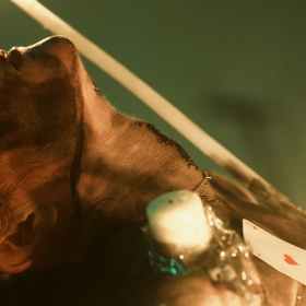Catherine Froment met son corps au travail, il se fait matière première, une matière à modeler. Elle interprète les vers du poète Roberto Bolaño (dans L’âne) et inscrit dans sa chair un récit étrange, celui d’un exil à moto, une fugue entre deux mondes, la traversée du styx…