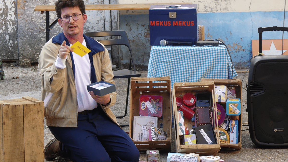 Un homme arrive. Il est espiègle, il alpague, il interpelle, dans une langue étrange et biscornue. Il pose une valise et commence son récit. Celui du voyage du Malcauseur, des mots qu’il a rencontrés, entendus, glanés et rapportés, au creux de sa langue. Puis, dans une expérience collective, chacun·e est invité·e à déposer dans des boîtes ses propres mots, biscornus, inventés, déformés, étouffés parfois. Le Malcauseur fait ainsi éclore « les mauvaises langues du public » et convoque les expressions rencontrées sur son propre chemin, en vue d’un poème collectif, insolent et improvisé, une tentative de zbeulifification des trouvailles du jour.